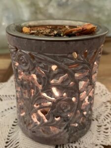 Jetzt in der dunklen Jahreszeit wird generell häufiger geräuchert. Wir nutzen Räucherstäbchen, die allerdings naturrein sein sollten, Räucherstövchen oder wir Räuchern mit Räucherkohle. Ich bevorzuge das Räucherstövchen, weil dieser Duft etwas dezenter ist als beim Stäbchen und bei der Kohle. Als hochsensibler Mensch ist es oft eine Gradwanderung, wann der Duft zu viel wird und welchen Duft wir vertragen. Ich merke auch schnell, wenn es anfängt zu viel zu werden und trotzdem liebe ich das Räuchern.